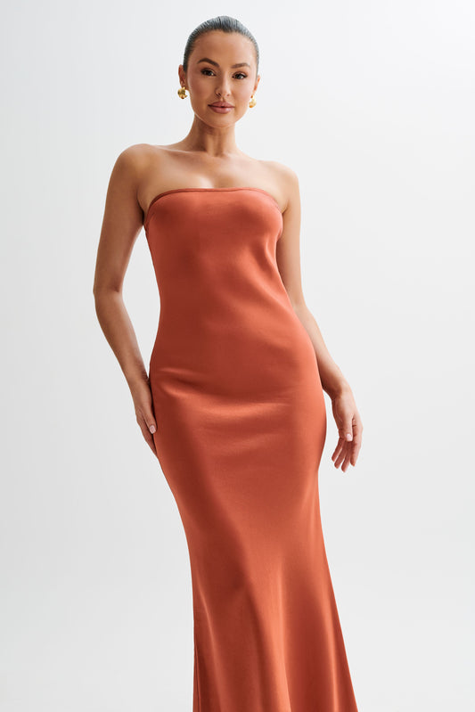 Claudette Strapless Satin Maxi Dress - Black Polka Dot Print