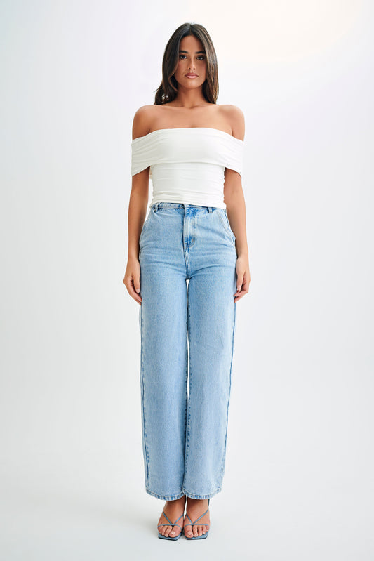 $59-20% Off Sale price $47Unit price / perMeena Recycled Nylon Off Shoulder Top - White