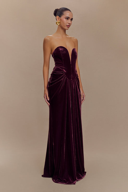 $249-20% Off Sale price $199Unit price / per20% OFF AT CARTPaige Strapless Velvet Maxi Dress - Plum
