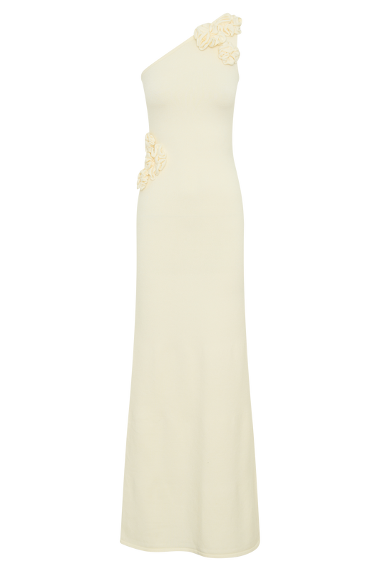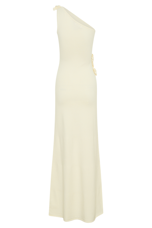One Shoulder Knit Maxi Dress With Flowers - Ivory