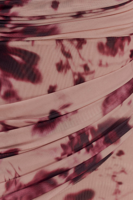 Adrienne One Shoulder Mesh Mini Dress - Nude Blurred Floral Print