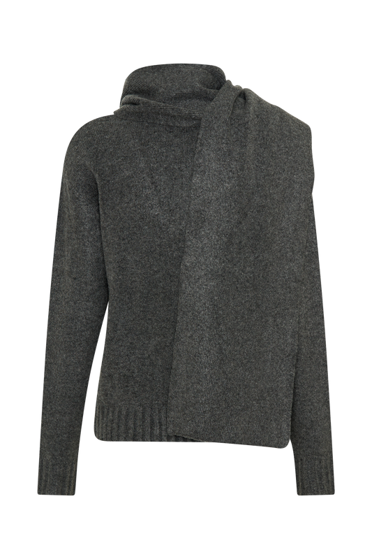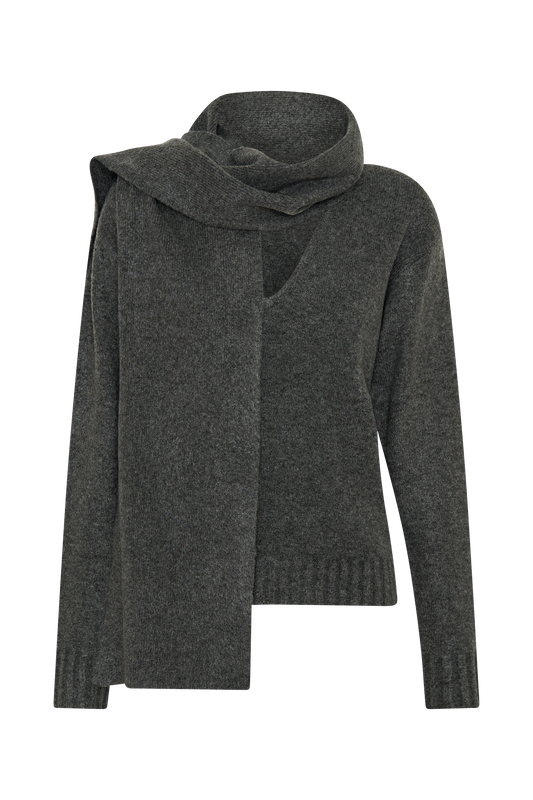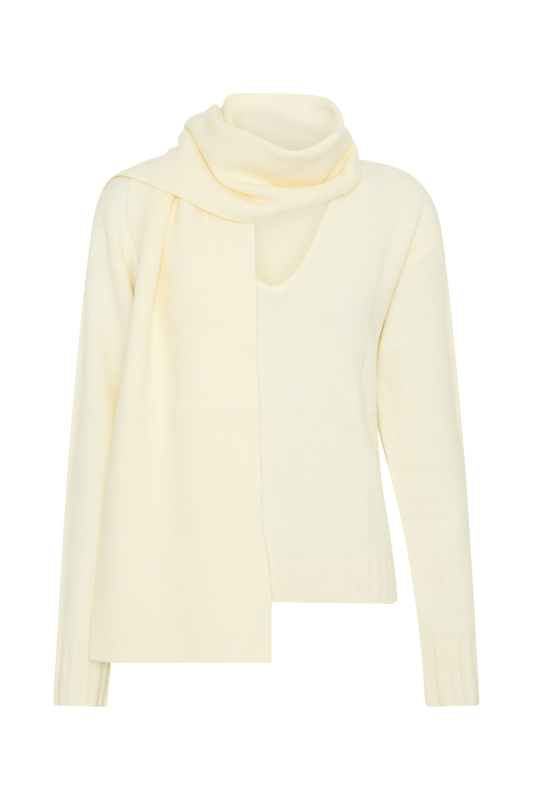 V Neck Knit Jumper With Scarf - Ivory Marle
