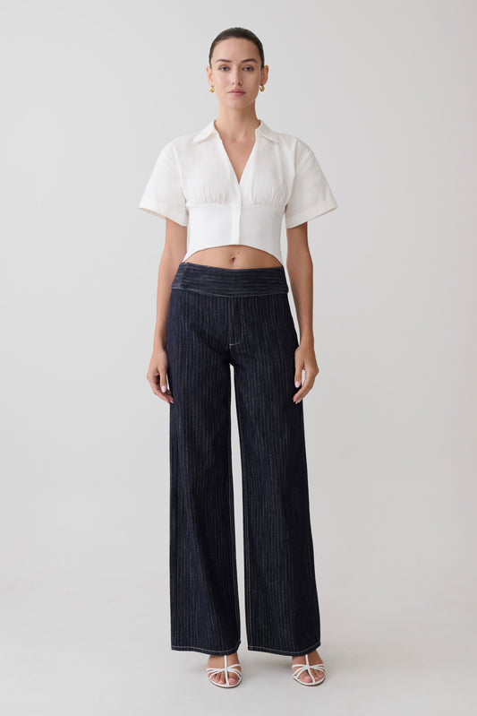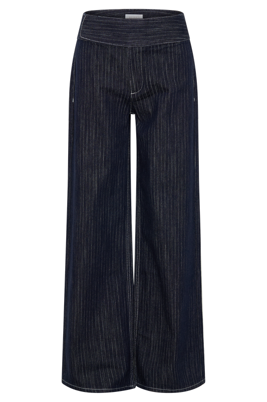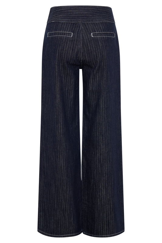 Sienna Flare Mid Rise Denim Jeans - Indigo Pinstripe