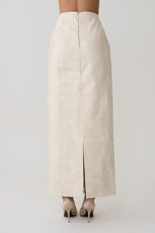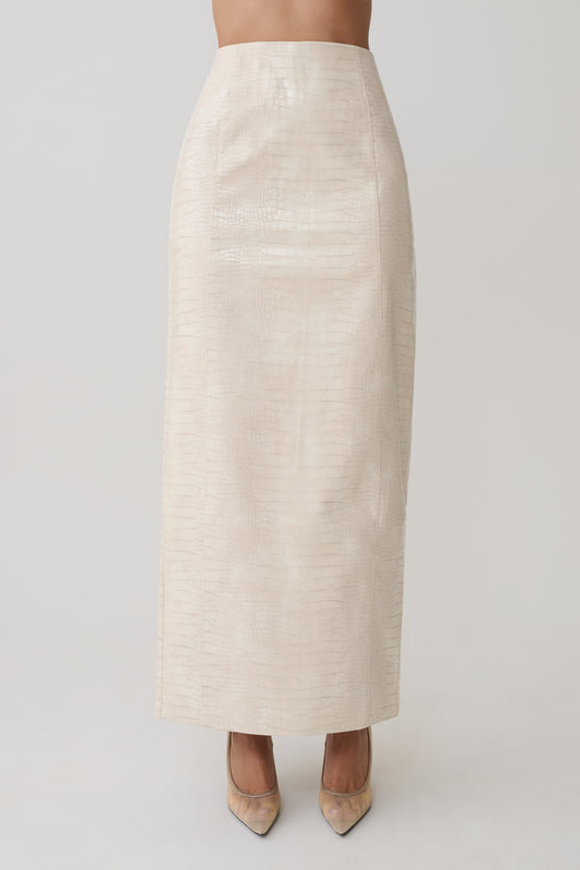 Sarah Faux Leather Crocodile Boot - Chocolate