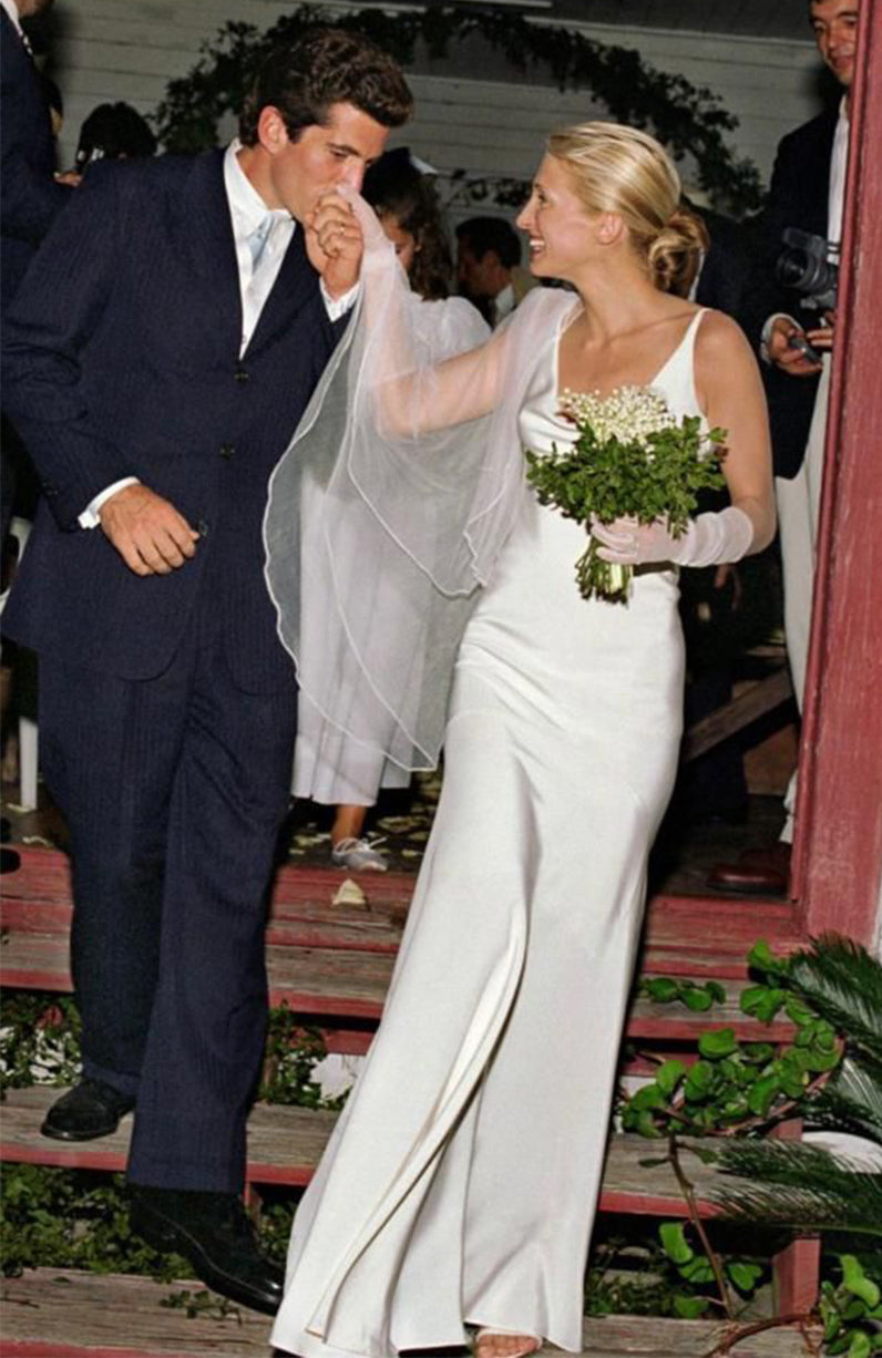 We simply cannot forget to include her wedding dress Designed by close friend Narciso Rodriguez. The simple ivory silk slip became one of the most iconic bridal moments in history and pinned on every girl’s dream wedding board. No embellishment, no excess, no trend following just quiet confidence, authentically her in every way.