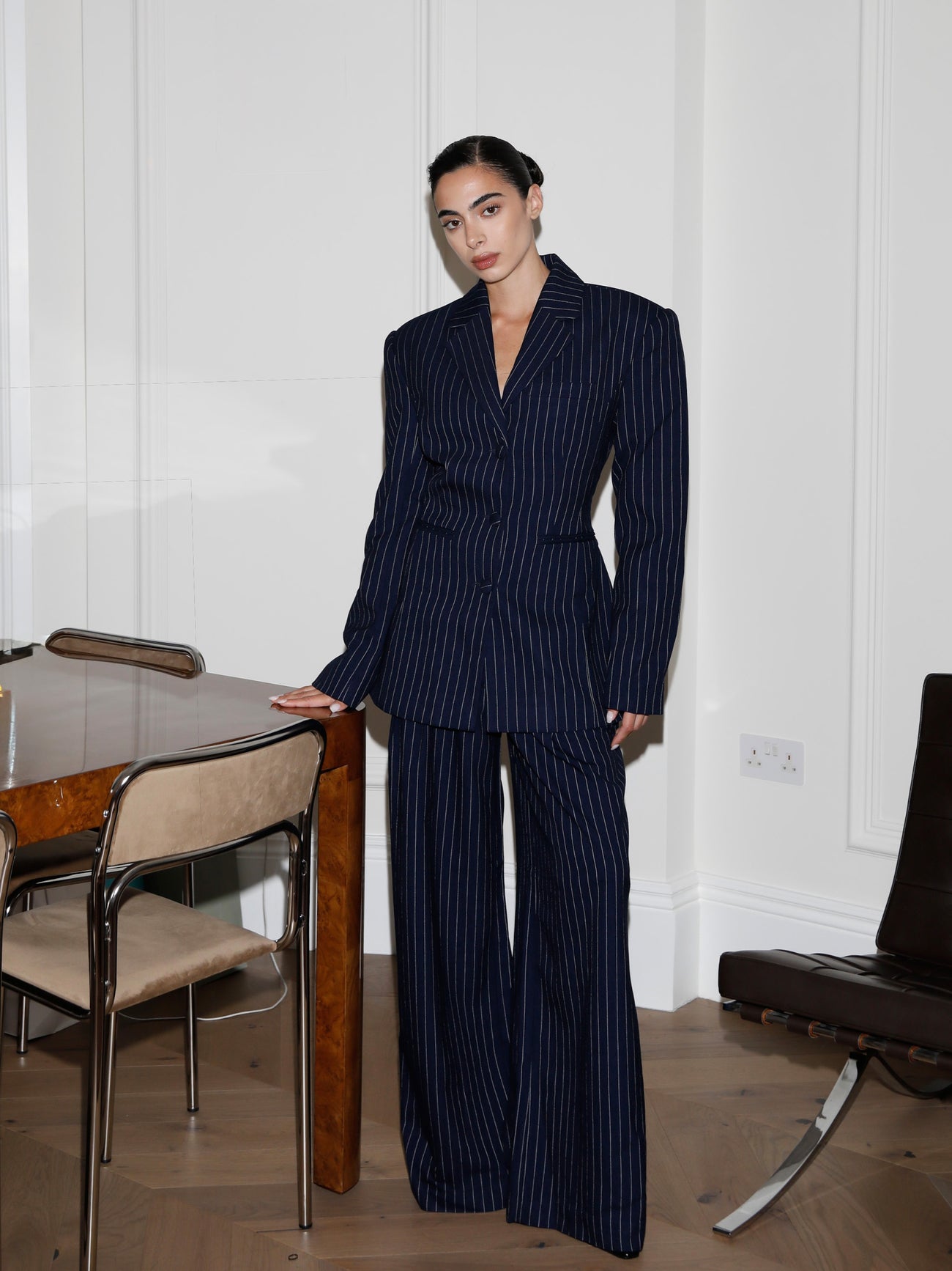 Jacqueline Pleated Wide Leg Pants - Navy Pinstripe