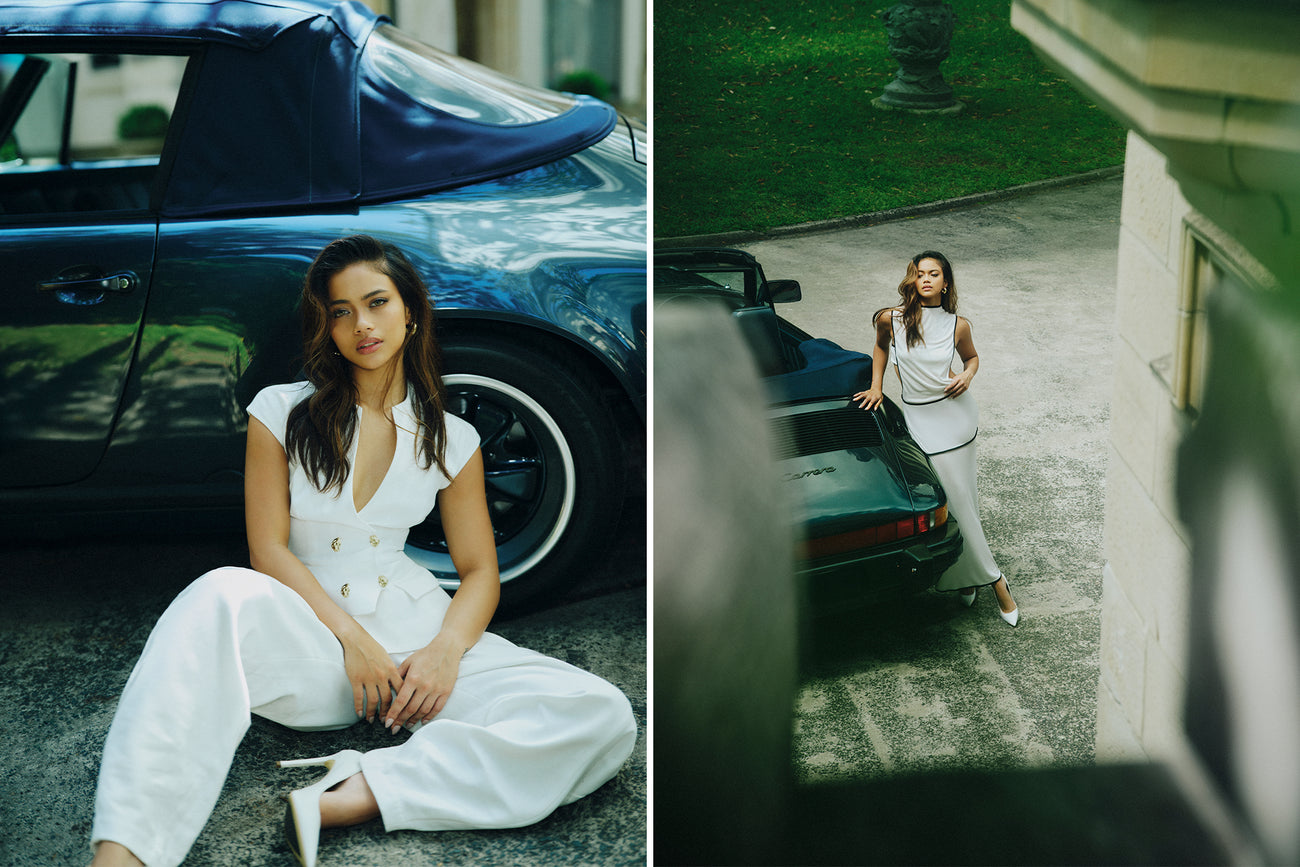 When Bianca Bustamante arrived on set for our International Women’s Day campaign, she entered with a calm confidence, greeting every crew member one by one. Just days earlier she had been racing at 260km/h in Madrid. Now she sat in the makeup chair getting ready to shoot fashion in Sydney. Whether on the track or on a shoot location, she was completely in her element: at peace, locked in, ready to go.