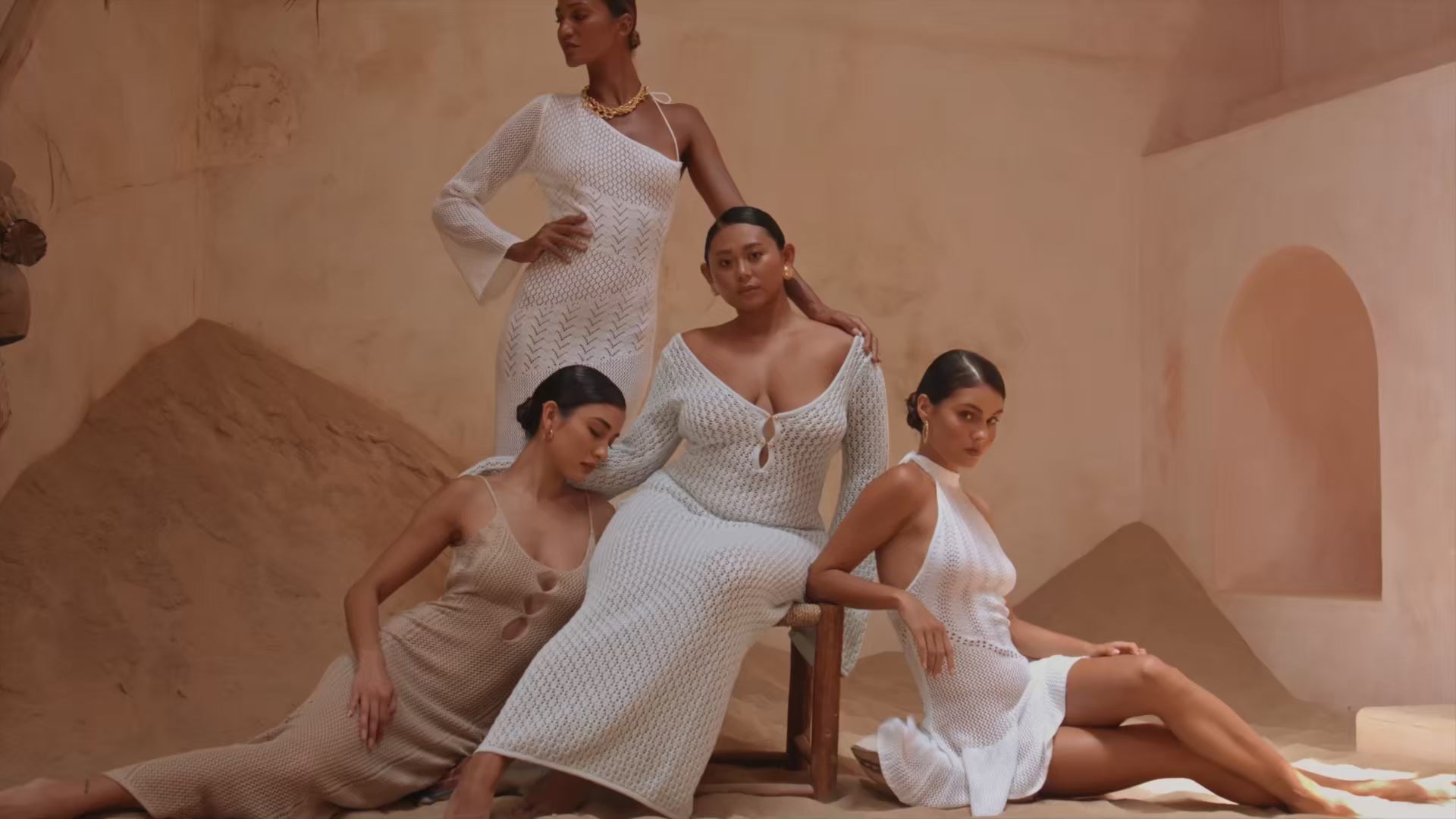 Shine with every entrance and embrace the unexpected—the Eos edit celebrates a new dawn with sheer knit dresses, bikinis in radiant bronze hues, and mixed yarn halter mini dresses.