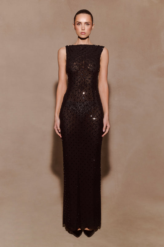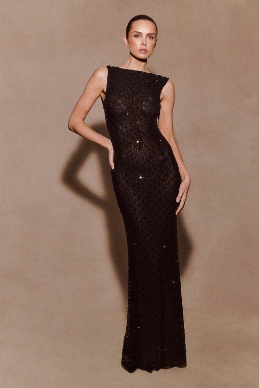 Samara Sleeveless Diamante Maxi Dress - Black