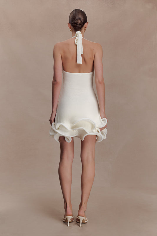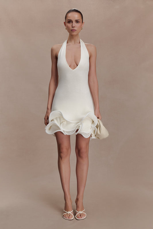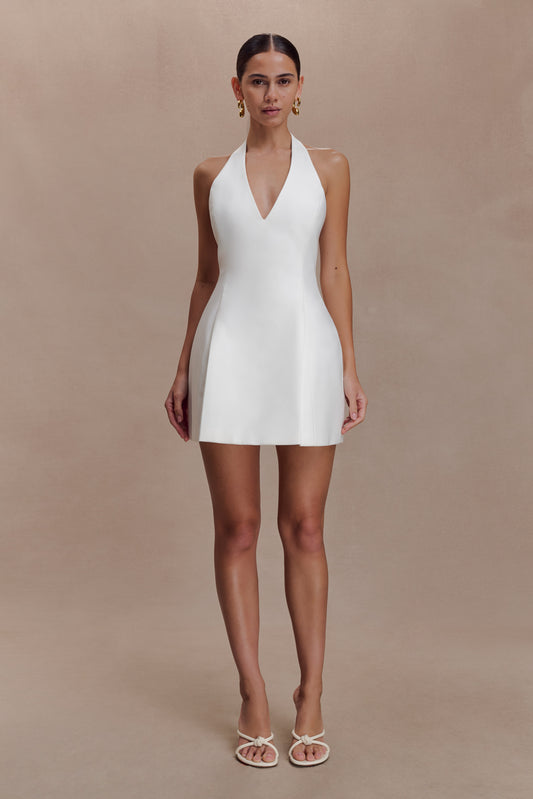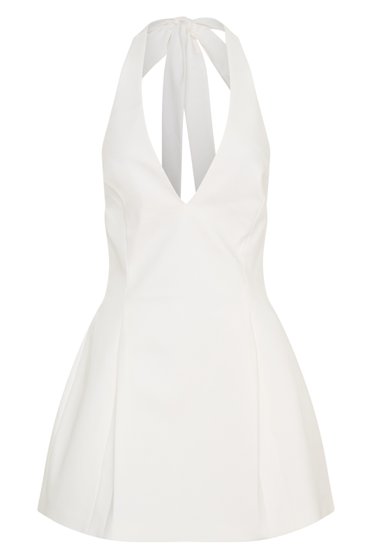 Halter Neckline Mini Dress With Tubed Hem - White