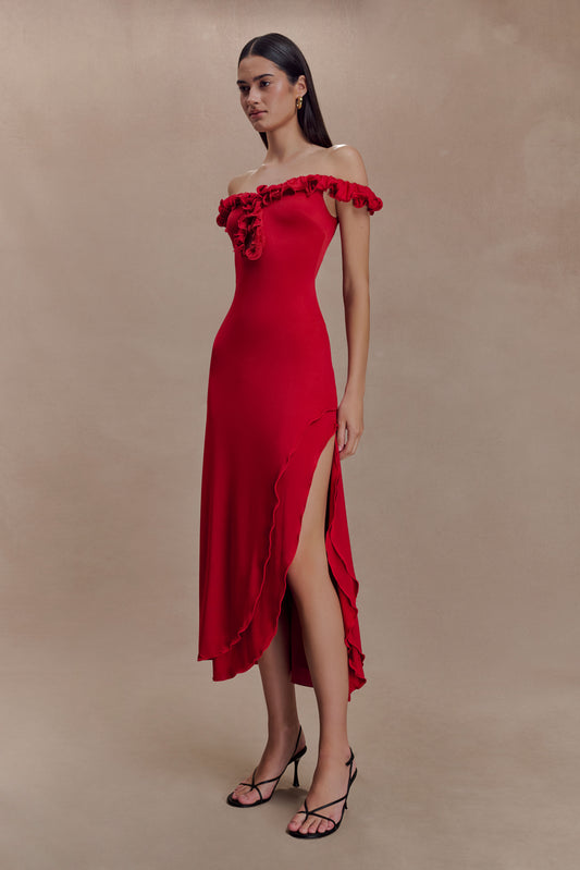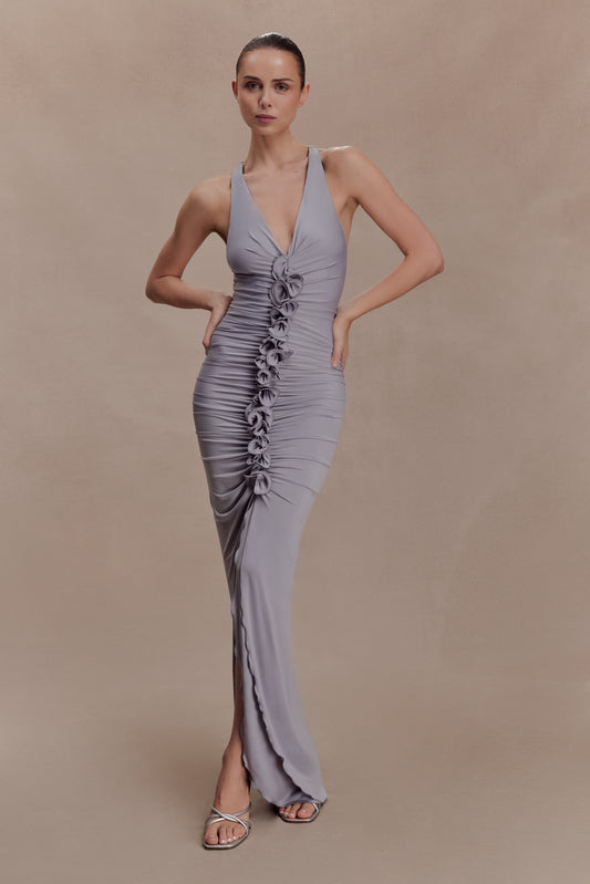 Alessandra Slinky Ruffle Maxi Dress - Grey
