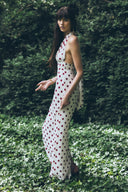Halter Chiffon Maxi Dress - Ivory/Merlot Polka Dot