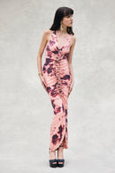 Slinky Ruffle Maxi Dress - Pink Blurred Floral Print
