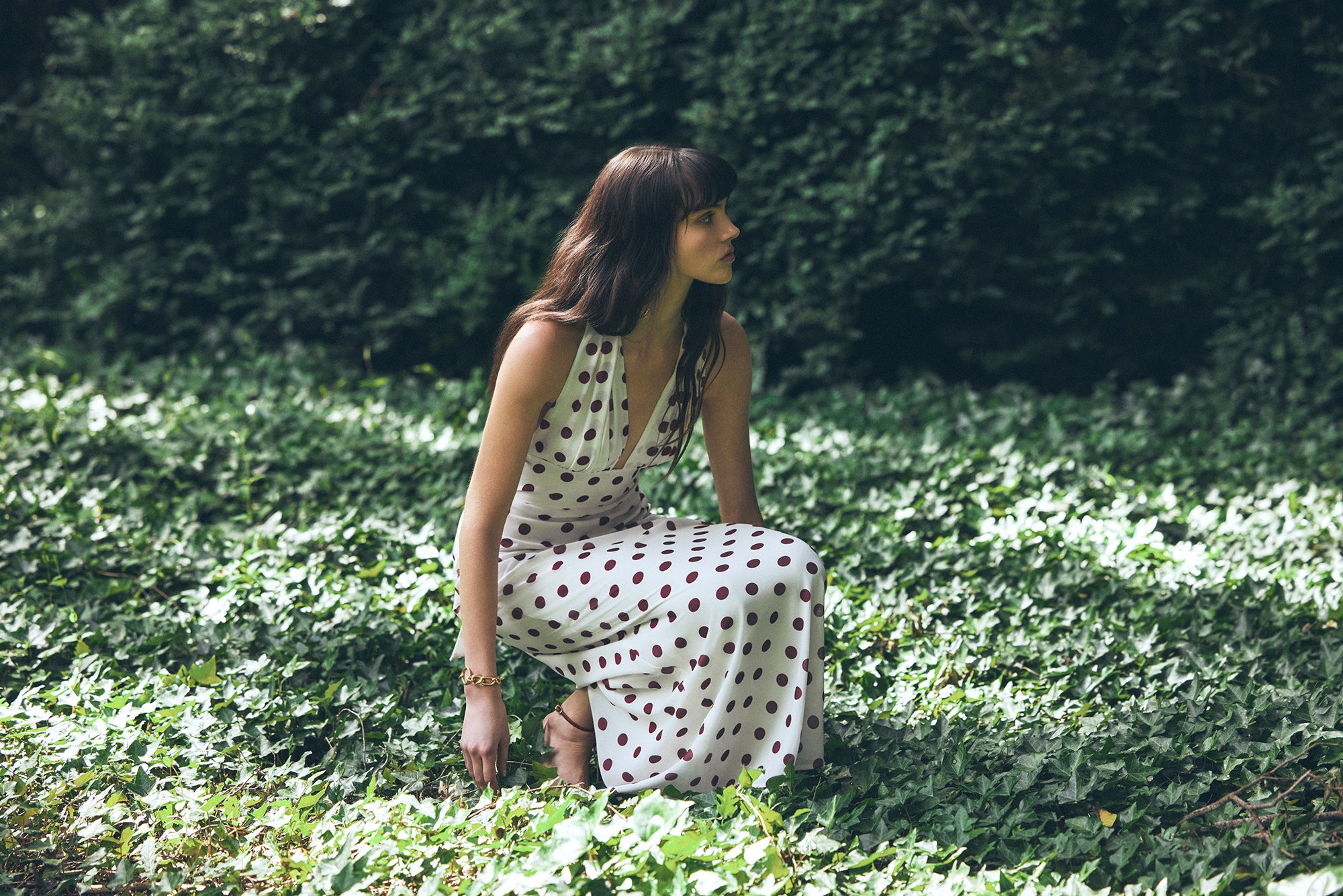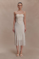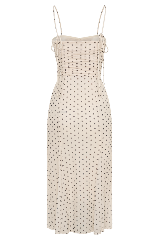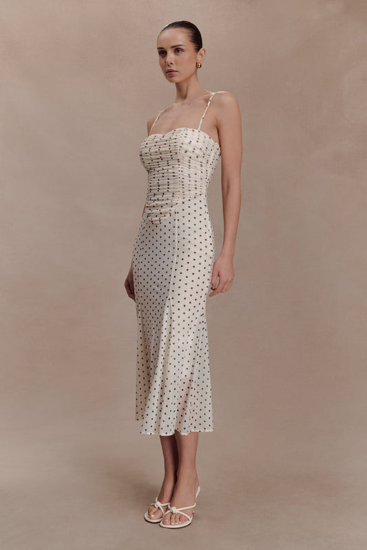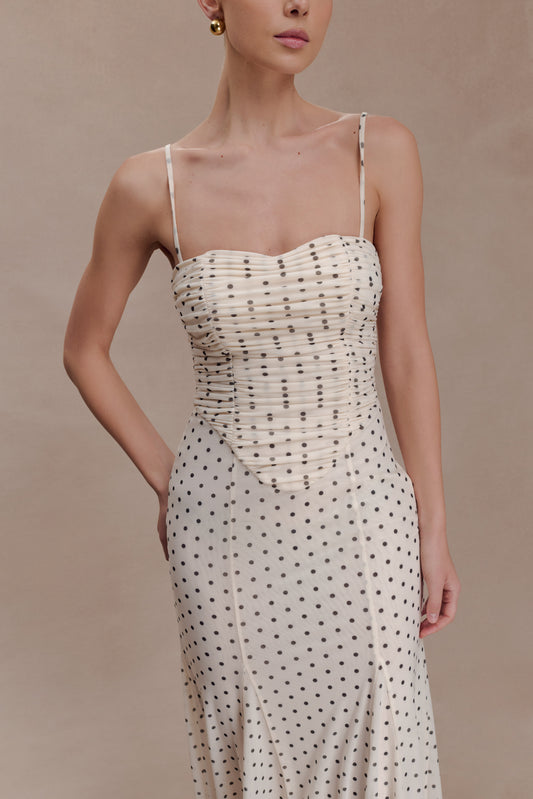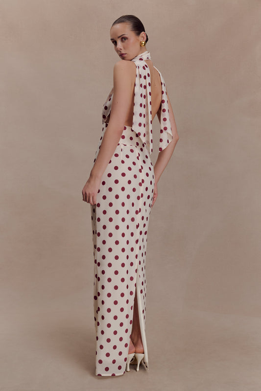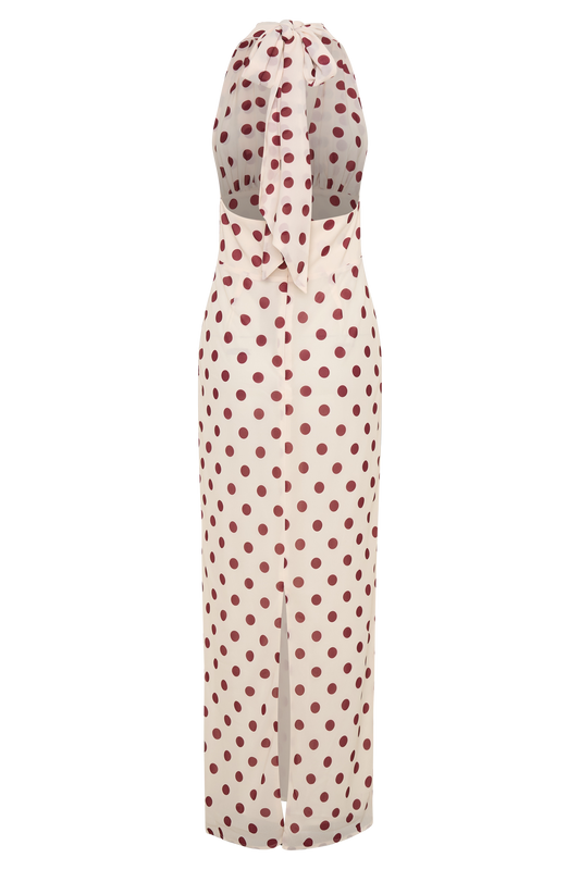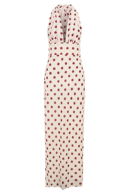 Nadine Halter Chiffon Maxi Dress - Ivory/Merlot Polka Dot