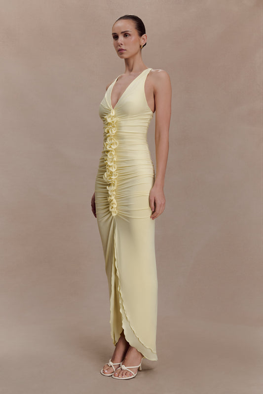Alessandra Slinky Ruffle Maxi Dress - Lemon