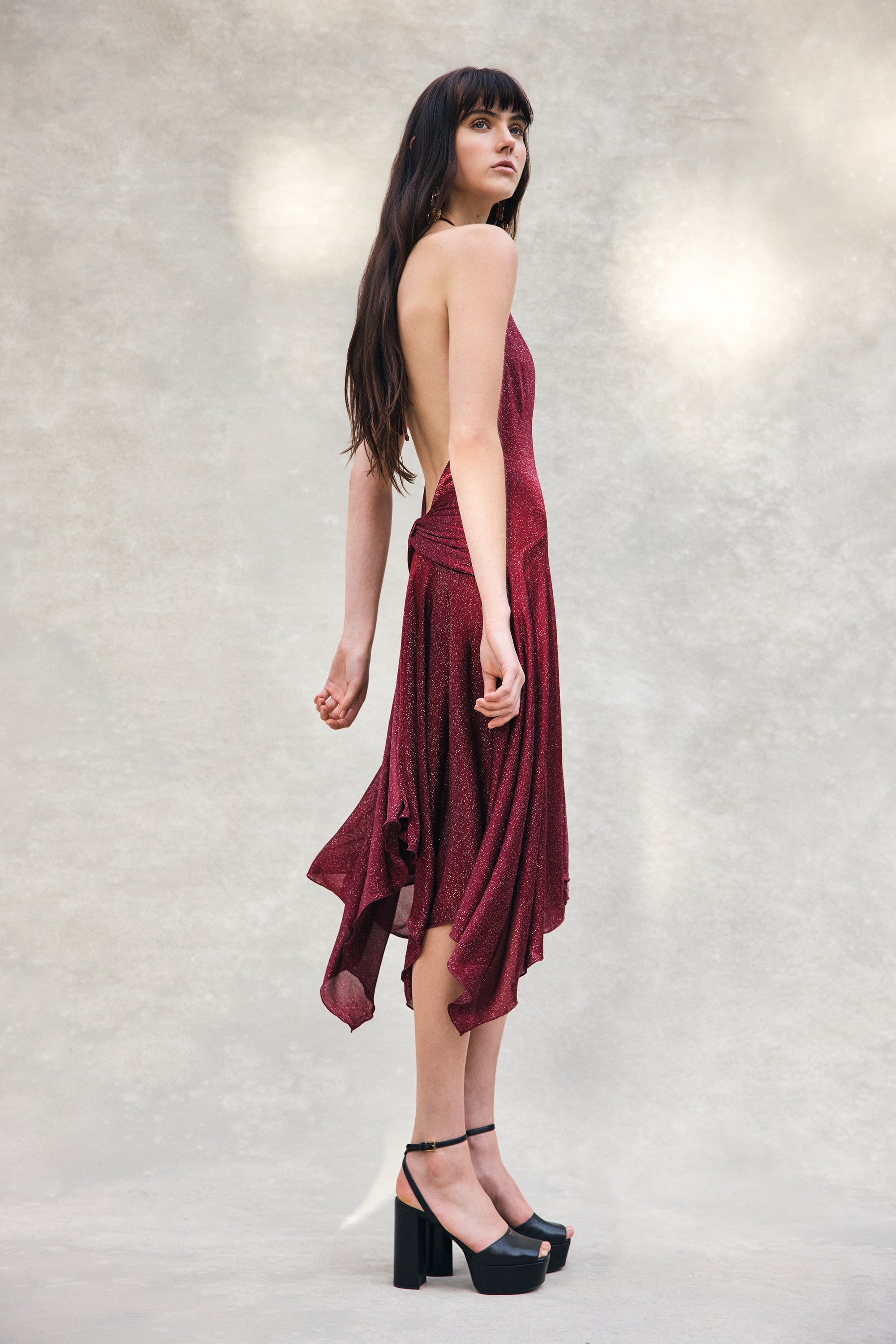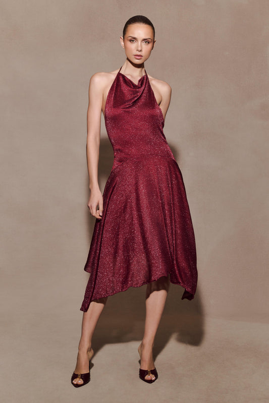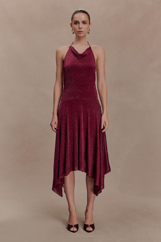 Lurex Hankie Midi Dress - Wine