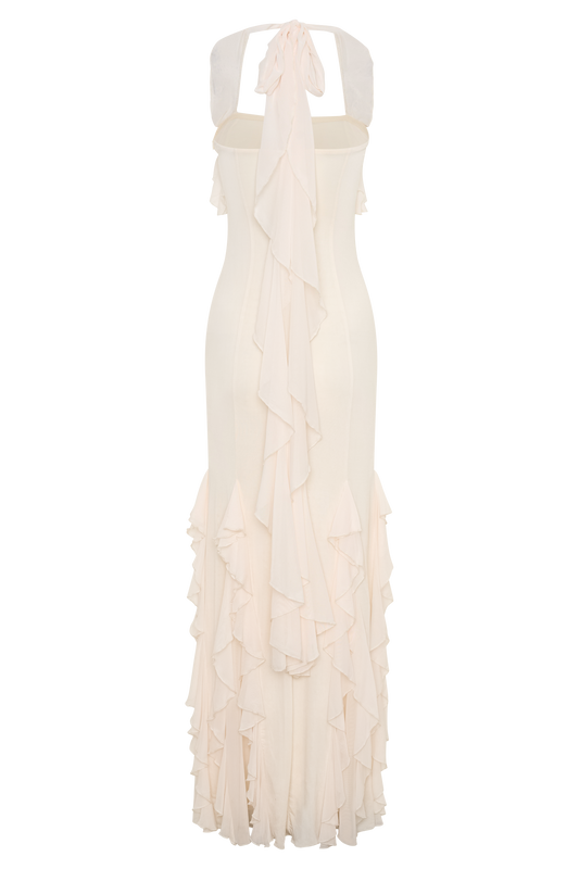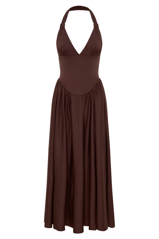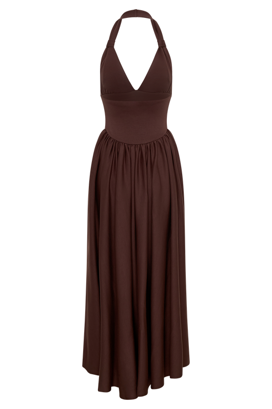 Sascha Lace And Satin Halter Maxi Dress - Ivory/Chocolate