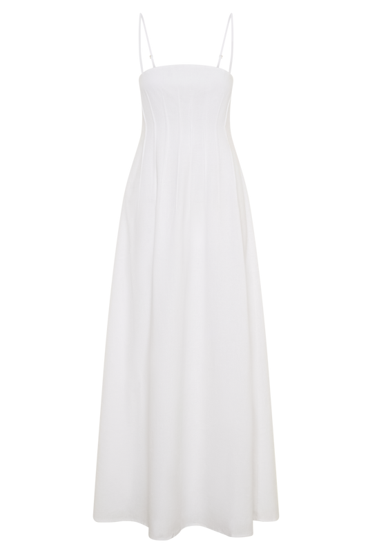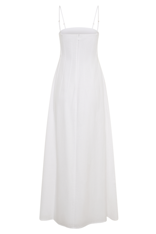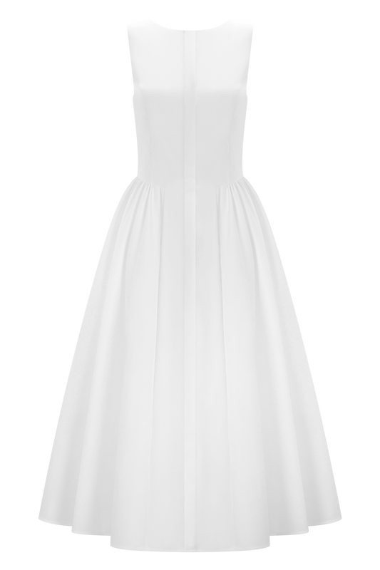 Monika Gathered Waist Cotton Midi Dress - White