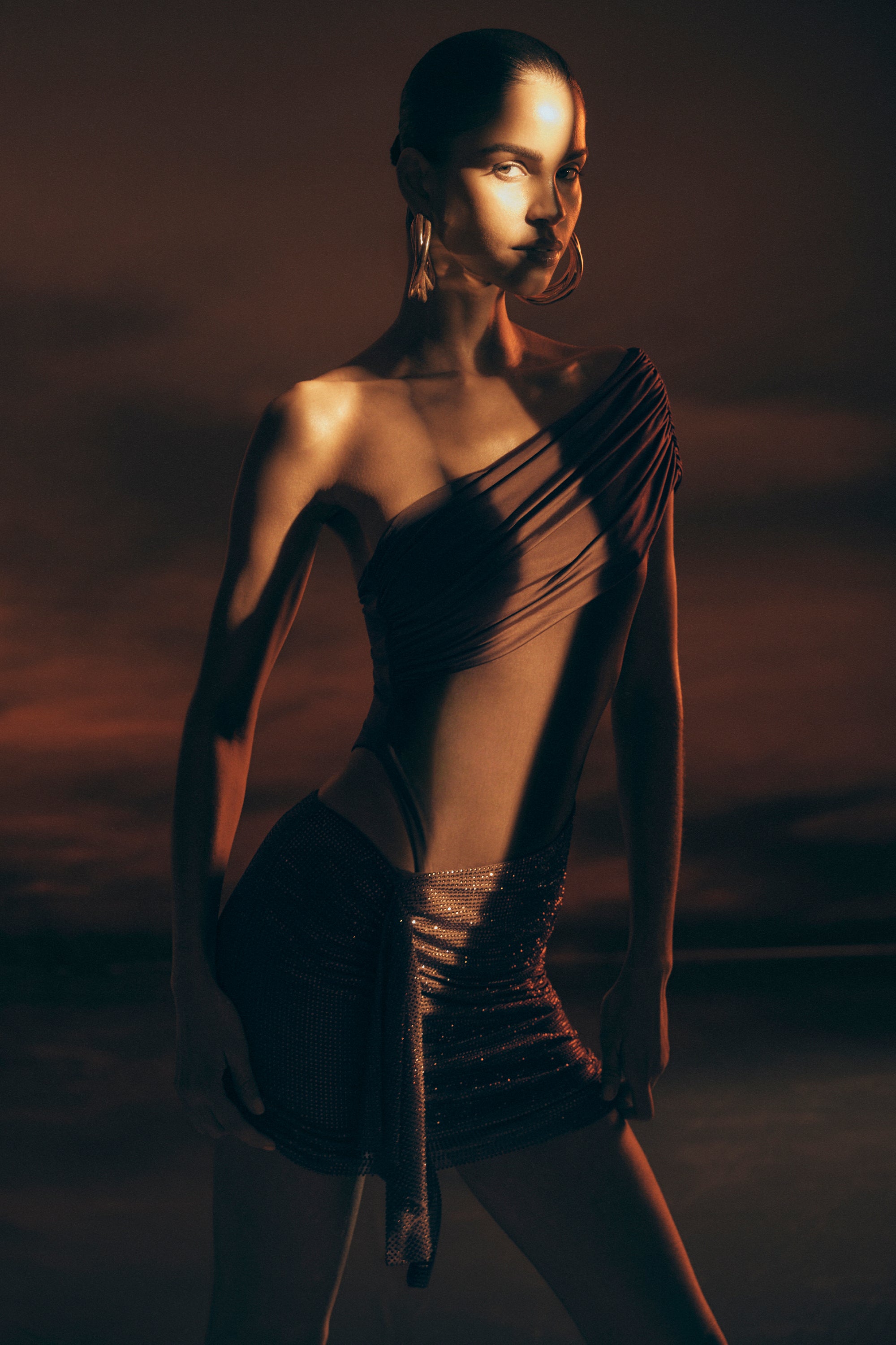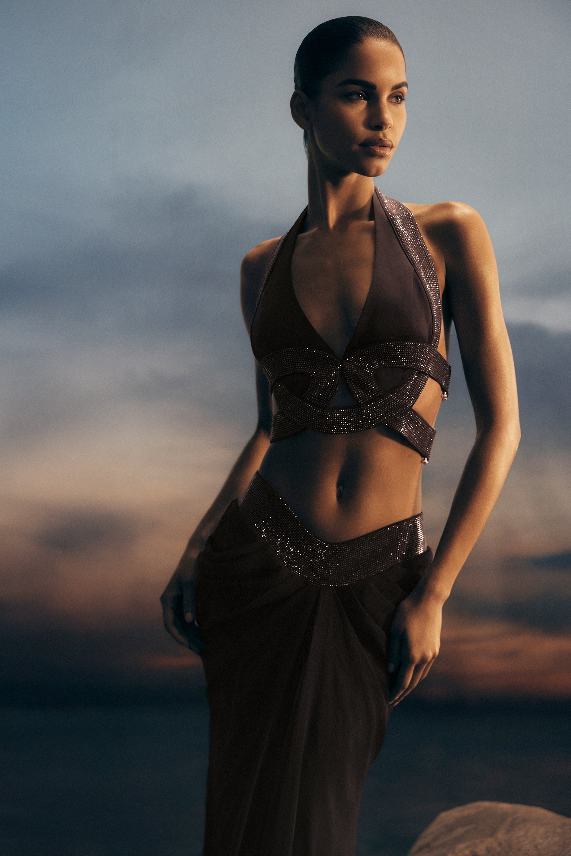 This collection explores femininity in motion: Lightweight fabrics move with ease, while the hand-embellished styles have gravity and presence, and the choice of colors give the clothes vibrancy & dimension.