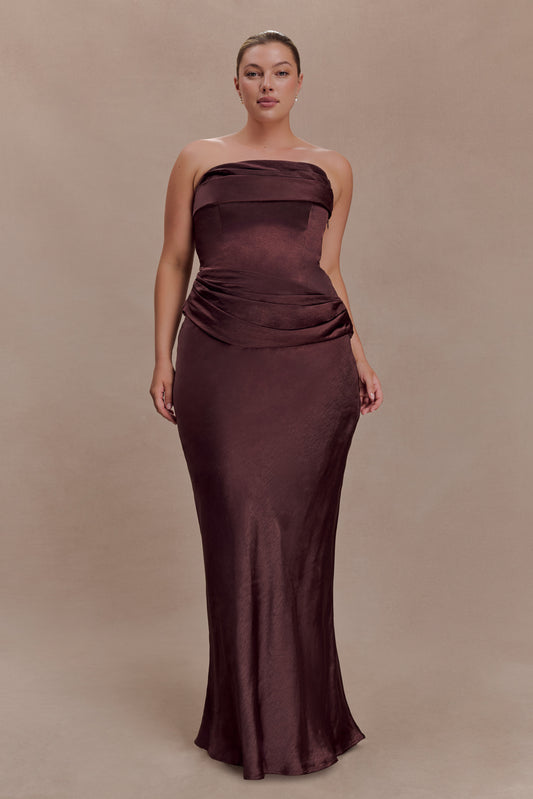 Madison Strapless Slinky Maxi Dress - Chocolate