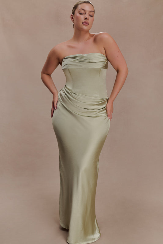 Regular price $319Unit price / perBuy 3 and Save 20%Jasmine Strapless Satin Maxi Dress - Sage