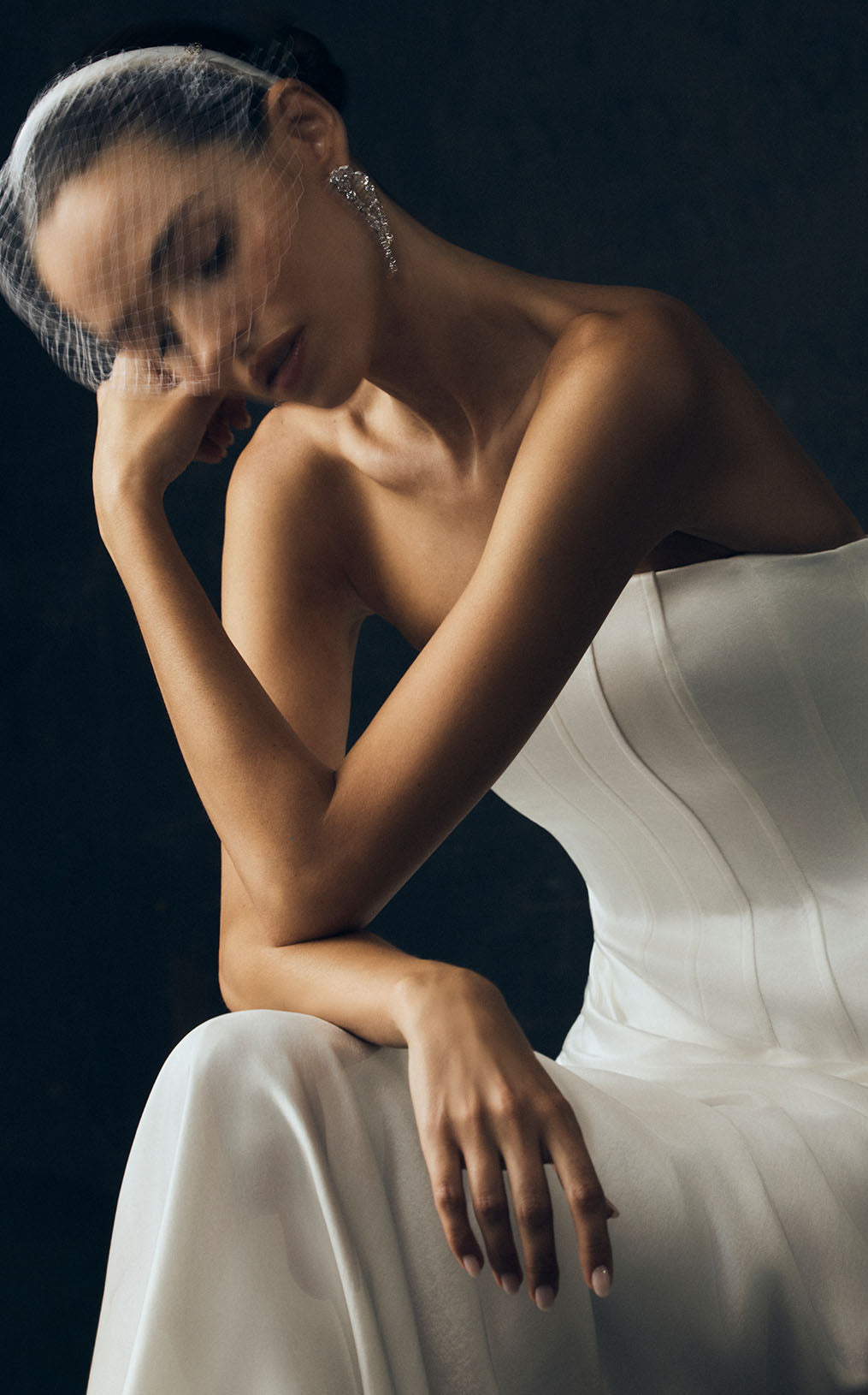 Our latest bridal collection showcases exquisite styles designed by our talented in-house team. Each piece is crafted with meticulous attention to detail, with select designs featuring delicate hand-beading by skilled artisans. These hand-embellished gowns blend timeless elegance with artisanal craftsmanship, creating truly one-of-a-kind bridal looks.