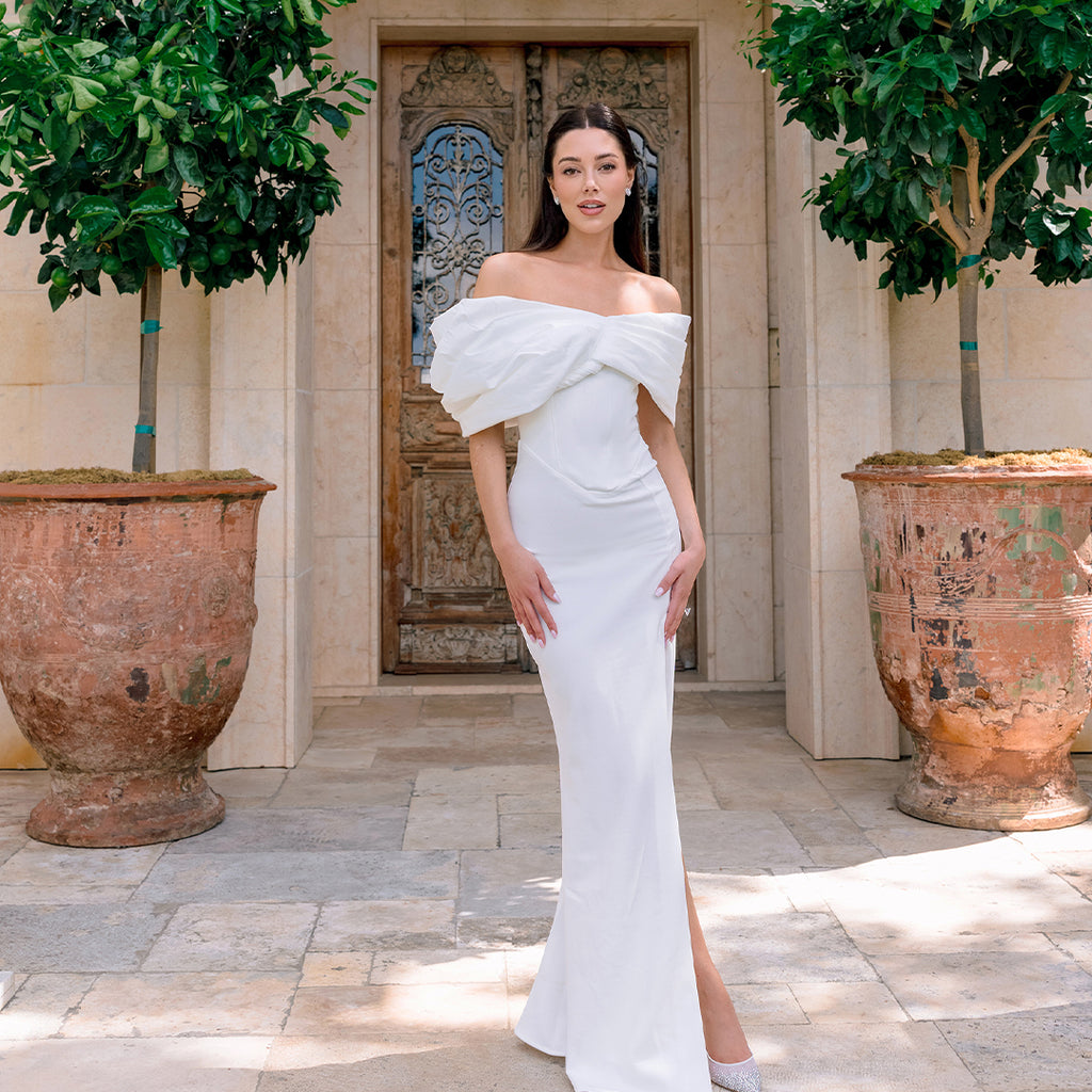 Aphrodite Off Shoulder Crepe Gown - Ivory