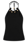 The ABEDA Cotton Top With Hardware is a sculpted summer statement. Designed with a gathered halter neckline, each fold is finished with lustrous gold bead hardware that catches the light with every movement. The back neck ties mirror the detailing, complete with gold beads at the ends for a polished, cohesive look. Fully lined for a smooth fit and complete with an invisible zip closure, this top pairs effortlessly with tailored bottoms, flowing skirts, or its matching maxi for a beautifully elevated warm-weather moment.