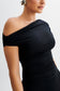 ALAYNA is an asymmetrical top with a straight-cut neckline and strategic ruching. Sewn from a custom blend of elastane and recycled nylon, its stretchy fabrication offers a fairly bodycon fit that highlights your curves. The ruching around the waist and arms further shapes and elongates the body, creating a universally flattering silhouette. Fresh and unique, this seasonal must-have can be worn as a solo feature or layered with a textured blazer.
