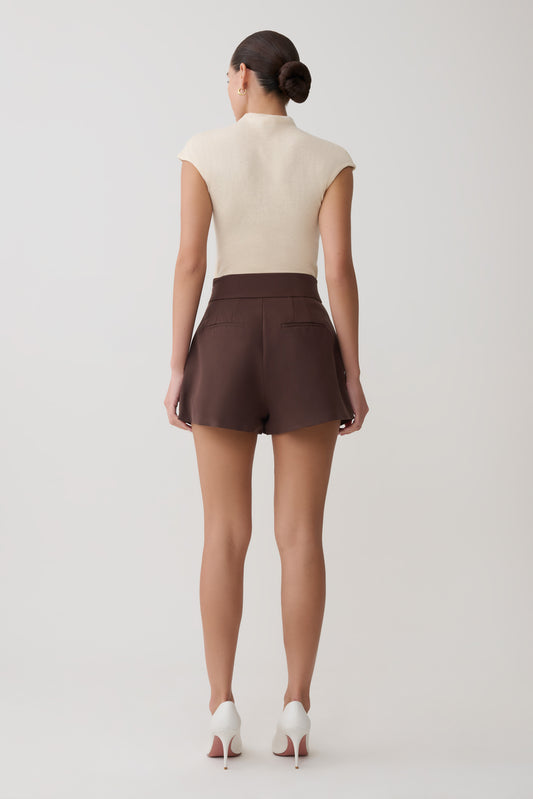 The ALDEN Short Trench Jacket offers a contemporary take on timeless outerwear. Designed with classic trench elements including shoulder epaulettes, raglan sleeves, a double breasted front, and a waist cinching belt, this cropped silhouette brings effortless polish to any look. Fully lined for comfort and structure, it features practical side pockets and functional belt loops for added versatility.