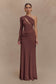 The ALEXIUS One Shoulder Knit Maxi Dress is a striking blend of modern design and comfortable knitwear. Featuring an asymmetrical neckline with a single long sleeve and front bust cutout, this fitted silhouette makes a confident statement. A gathered overlay panel drapes across the hip for added texture and movement, while the unlined knit keeps it lightweight and body-hugging. Finished in a maxi length, this dress is the perfect piece for elevated evenings, standout events, or any moment that calls for soft structure and strong style.