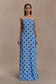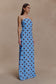 Strapless Chiffon Maxi Dress - Blue Polka Dot