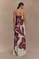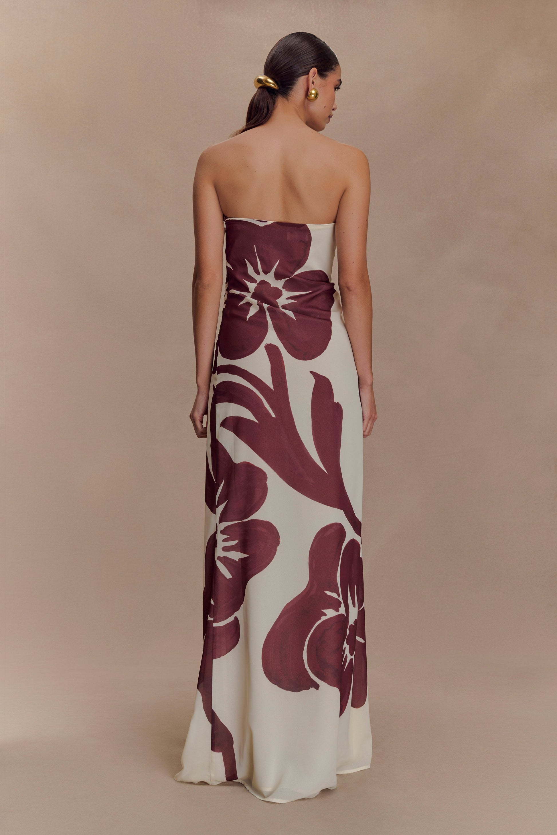 Strapless Chiffon Maxi Dress - Brown Deco Fleur Print