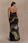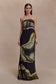 Strapless Chiffon Maxi Dress - Green Fluid Reverie Print