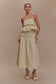 The AMIRAH Strapless Bubble Crop Top combines bold design with effortless elegance. Featuring a flattering strapless fit and a structured bust overlay, this top creates a sleek, feminine silhouette. The playful bubble hem shape adds volume and movement, while the cropped length offers a modern, flattering look. Fully lined for comfort and structure, it’s the perfect piece to elevate any outfit. For a chic and coordinated look, pair it with the Amirah Midi Skirt, creating a refined yet playful ensemble that’s perfect for both casual outings and special occasions.