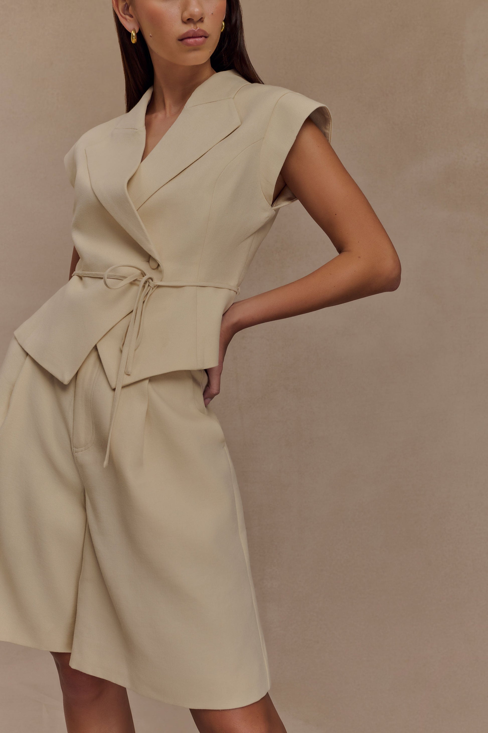 The ANDINA Linen Shorts offer a refined take on warm-weather dressing. Designed in a flattering high-waisted silhouette, these Bermuda-length shorts feature front pleats, side pockets, and back darts for a softly structured shape. The functional centre front fly and button closure add polish, while the relaxed fit and full lining ensure comfort from day to night. Pair with the Andina Short Sleeve Linen Top for a crisp, coordinated look made for spring.