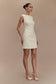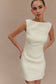 ANGELA is a sleeveless mini dress crafted with a chic boucle fabrication, featuring a clean boat neckline and an A-line skirt. Crisp and modern, the front showcases contoured seam lines for a fresh, fitted look. The dress closes with an invisible zip, keeping the silhouette smooth, sleek, and sexy. A beautiful blend of stylish and classy, this versatile dress is a wardrobe essential.