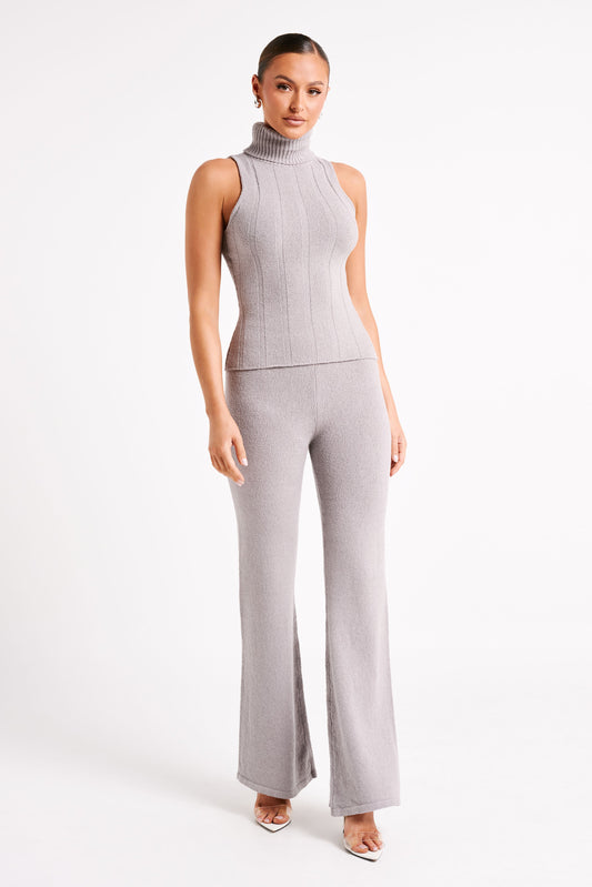 ANGELINA is a pair of high-rise pants with knit detail and slightly flared hems. Its cotton, nylon, and elastane fabrication coupled with its elasticated waistband makes for a comfortable, inclusive fit. Form-fitting but wide-legged around the calves to hem, its beautifully balanced silhouette makes it a perfectly versatile piece suitable for different occasions. Pair it with the Angelina Ribbed Turtleneck top for a perfect match.