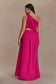 The ARIA Chiffon Cut Out Maxi Dress is a statement silhouette that balances fluidity with precision. Designed with a one-shoulder neckline, it’s framed by delicate gathers across the bust and waist for a flattering shape. A cut-out detail at the waist adds bold definition, while a draped panel at the back creates graceful movement. Fully lined with an invisible side zip for a seamless finish, this dress flows into a maxi length, combining modern femininity with timeless elegance.