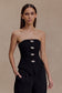 The ARLA Button Up Corset Top is designed with precision tailoring and contemporary detail. Featuring a straight neckline and a shaped front hemline, it cinches the waist with a sculpted silhouette. Hardware trim runs along the centre front seam for a touch of polish, while full lining ensures structure and comfort. Finished with a centre back zip, this top balances strength and sophistication—perfect paired with denim, suiting, or coordinating separates.