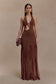 Aubree Crepe And Mesh Maxi Dress - Chocolate/Mocha