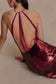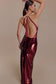 The BALDWIN Sequin Cut Out Maxi Dress commands attention with its sleek, high-shine silhouette. Featuring a halter neckline and a fitted bodycon design, it contours the figure while catching the light from every angle. A sheer mesh panel at the back adds a touch of contrast, balanced by the fluid movement of a back leg split. Crafted with an elasticated neckband for comfort and partially lined for a seamless fit, this dress is the definition of modern allure — made for the spotlight.