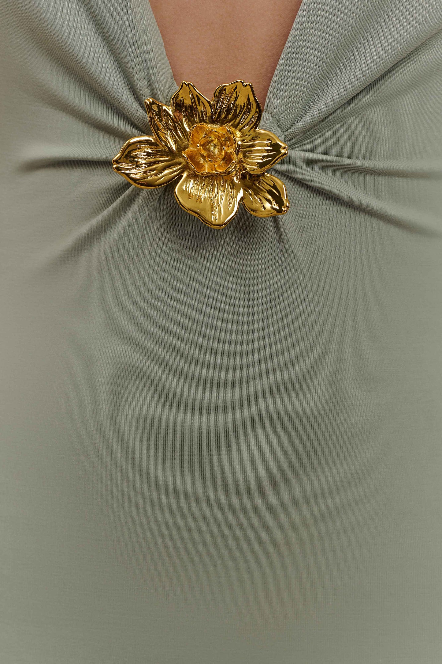 Plunge Maxi Dress With Floral Hardware - Basil