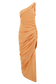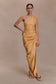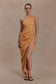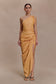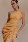 The BIRGIT Linen Midi Dress With Hardware brings modern refinement to a timeless silhouette. Designed with a one-shoulder neckline and a fold detail that frames the arm and collar line, it creates a sculptural yet effortless look. Gathering along the side seam flatters the waist and adds soft dimension, while the linen fabrication offers a natural drape and breathable comfort. Fully lined and finished with an invisible back zipper and hook-and-eye closure, this midi-length dress combines minimal polish with quiet strength.