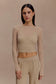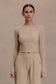 The BRIONEE Silk Blend Knit Top is a refined take on knitwear with directional detail. Designed with a boat neckline, its sheer bodice and sleeves create subtle allure, balanced by a ribbed knit waist panel that defines the silhouette. A thick under-bust knit panel adds structure to the fitted shape, while the unlined finish keeps it lightweight. This top blends softness with definition, making it the perfect piece for elevated day-to-night styling.