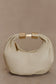 The BRISTOL Mini Croissant Leather Bag brings luxury to every detail in a petite, sculptural form. Crafted from real smooth leather in cream or PU gold crackle leather, it features base gathers and topstitching that create the brand’s signature croissant shape. A custom gold MESHKI zipper and matching hardware add polish, while the microfiber lining and internal sleeve pocket offer thoughtful functionality. Sized to fit your essentials — including a large iPhone — this bag’s tuck-detailed strap and curved silhouette make it the perfect balance of practicality and sophistication.