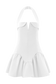 The CALIPSO Halter Mini Dress is a modern take on timeless elegance. Designed with a sophisticated halter neckline and a folded V-split detail, this dress exudes understated charm. The drop waist with a curved seam creates a flattering, elongated silhouette, while soft gathers in the skirt add graceful movement. Princess seam lines enhance the fit, and the invisible back zipper ensures a seamless finish. Partially lined for a lightweight feel, this dress is perfect for elevated daywear, cocktail events, or romantic evenings.