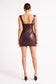 The CARA is a glossy faux leather dress with a mini length, a form-loving bodycon fit, and a fully lined fabric. It also boasts an elegant square neckline and adjustable straps thick enough to wear your favourite bras with. Secured with a centre back zipper, you can easily throw it on to your next social calendar event. Wear it with the Taylor Oversized Faux Leather Jacket to complete the look.