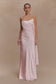 The CARAH Satin and Chiffon Maxi Dress is the epitome of modern romance. Cut on the bias for a naturally flattering fit, this slip-style silhouette features a curved neckline and fluid satin finish that skims the body with ease. Draped chiffon sashes cascade across the front and back, adding movement and dimension from every angle. Fully lined and finished with an invisible zip for a seamless look, this dress is your go-to for elevated evenings and elegant occasions.