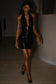 Sequin Halter Mini Dress - Black